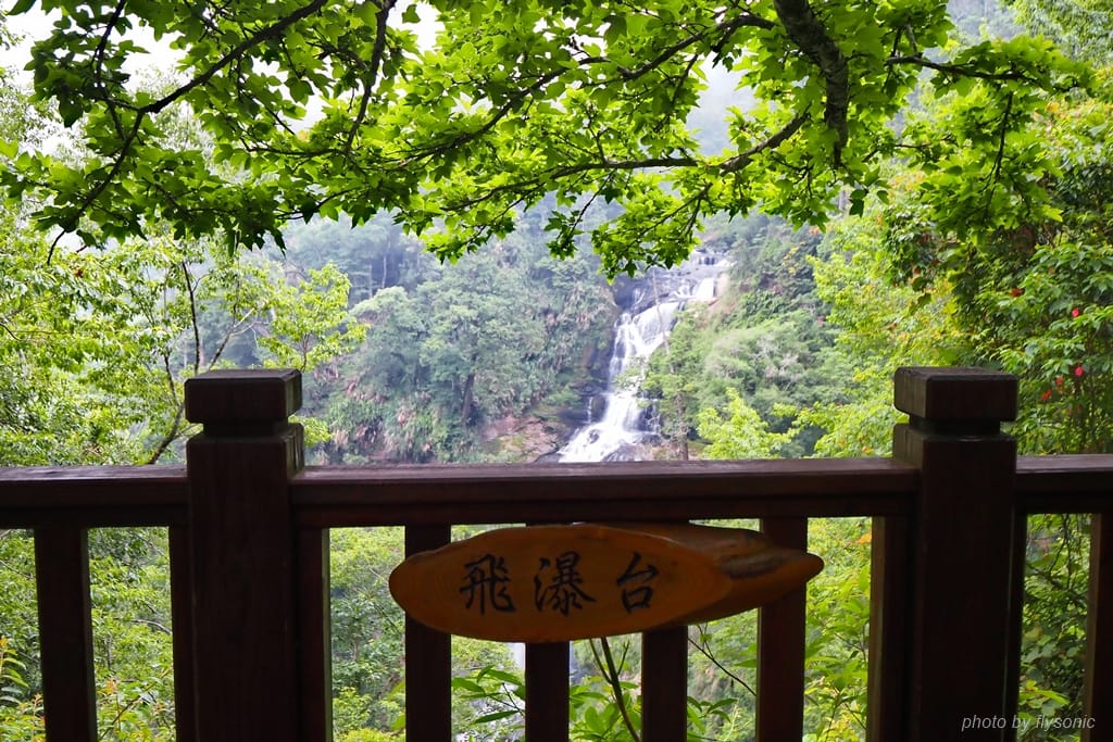 ▲青龍瀑布出現啦!飛瀑台上遠眺瀑布。
