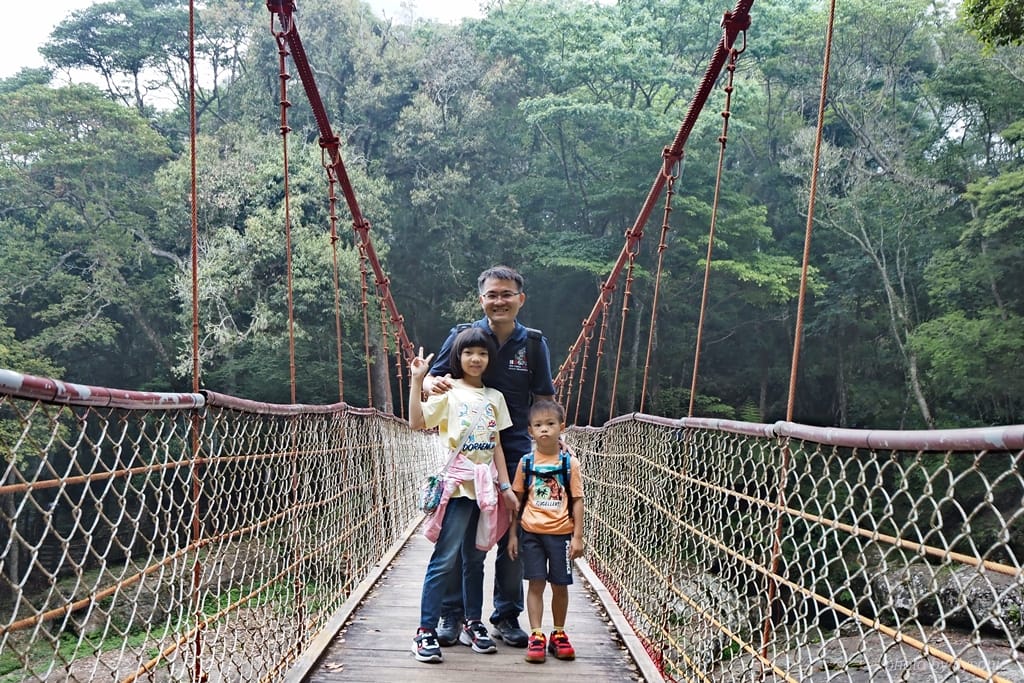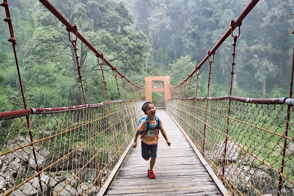 ▲兒子在吊橋上奔跑,一點也不害怕吊橋在搖晃。