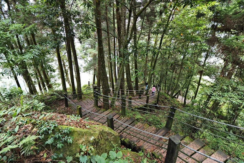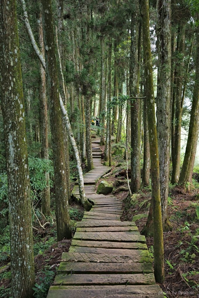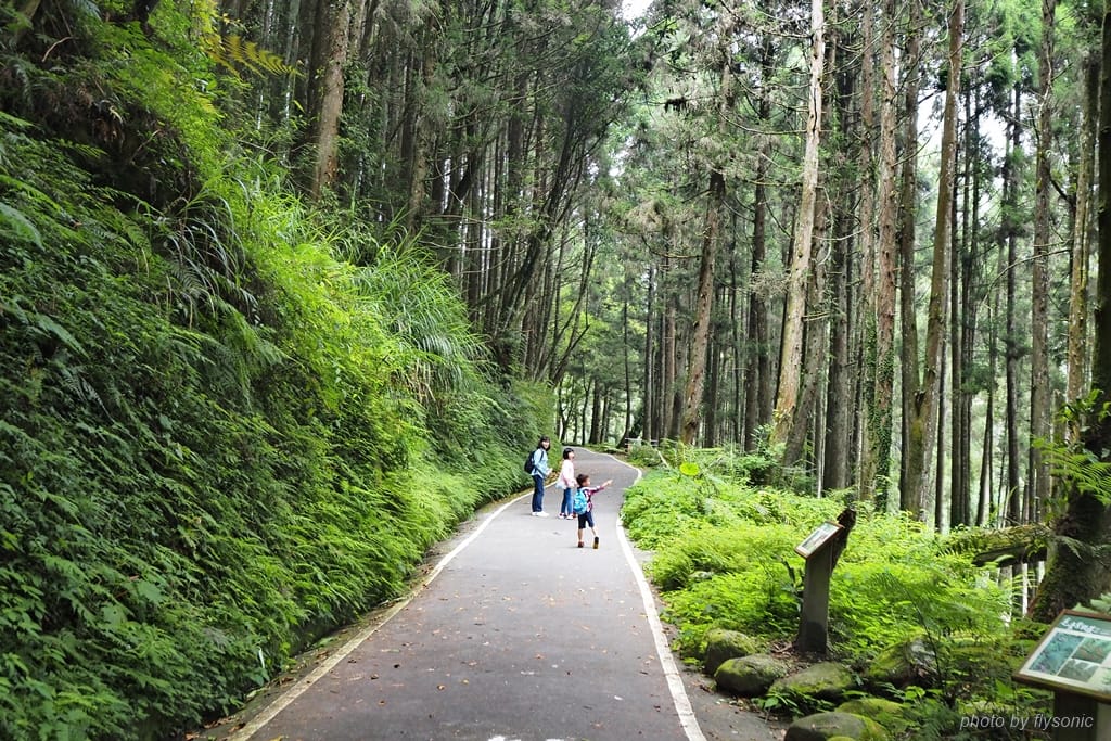 步道旁除了各種蕨類以外,還種植許多杉林。走著走著,涼風吹來,還會覺得冷,要穿上薄外套。