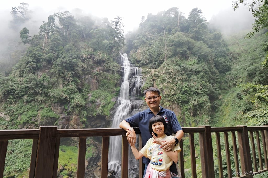 ▲看到瀑布我們都興奮極了,輪流來跟瀑布合照,只有兒子忙著開箱,才不管什麼瀑布。