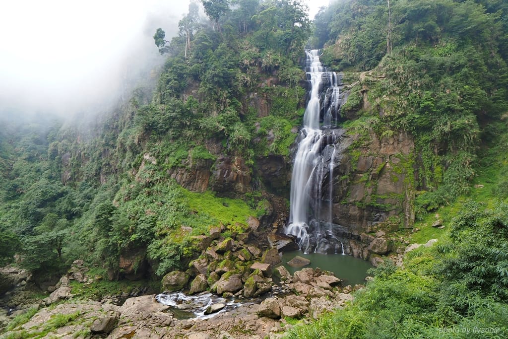 ▲雲霧籠罩下的青龍瀑布很迷濛,有點夢幻。