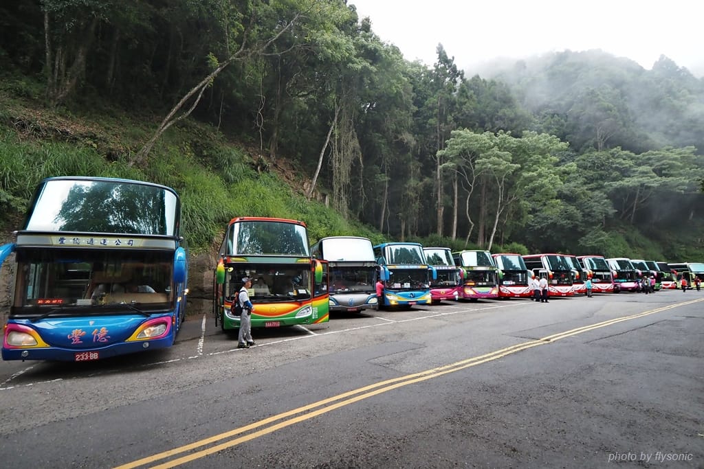 我往甘草谷品店方向走去找車子,看見一整排遊覽車,這些遊覽車正準備招呼遊客上車回家。