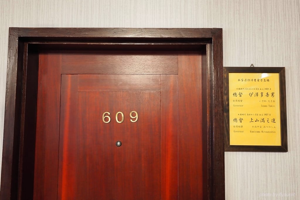 咖啡廳外的長廊有幾間套房。這間套房曾經招待過總督伊澤多喜男、上山滿之進。