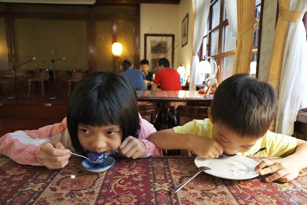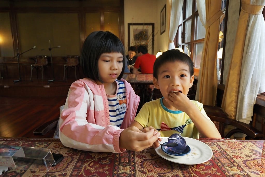 「五零年代咖啡廳」有種舊時代的韻味,特別適合情侶或退休族。我們帶著兩個小孩吵吵鬧鬧的,實在很煞風景。