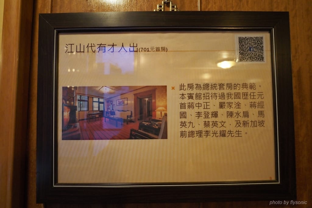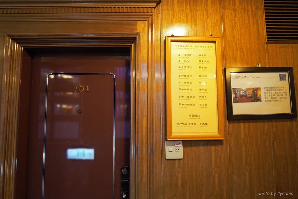 這間總統套房曾經招待過蔣中正、嚴家淦、蔣經國、李登輝、陳水扁、馬英九、蔡英文,以及新加坡前總理李光耀。
