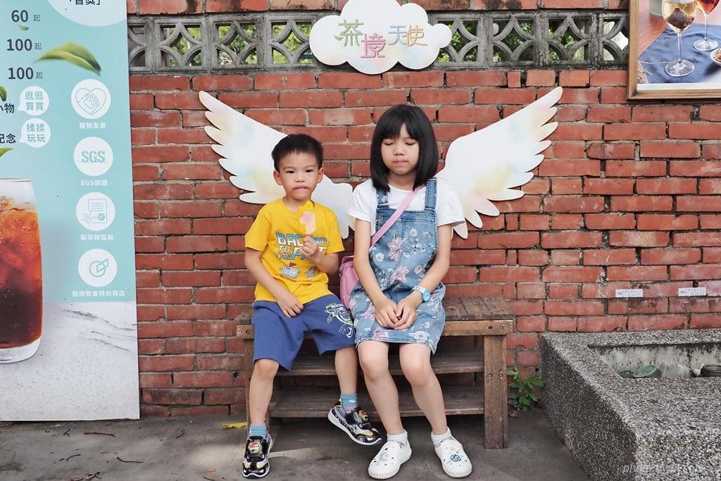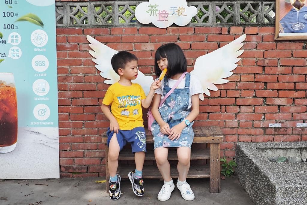 ▲大熱天裡逛文創商店,兩個小孩沒有興趣,無精打采的坐在路邊。