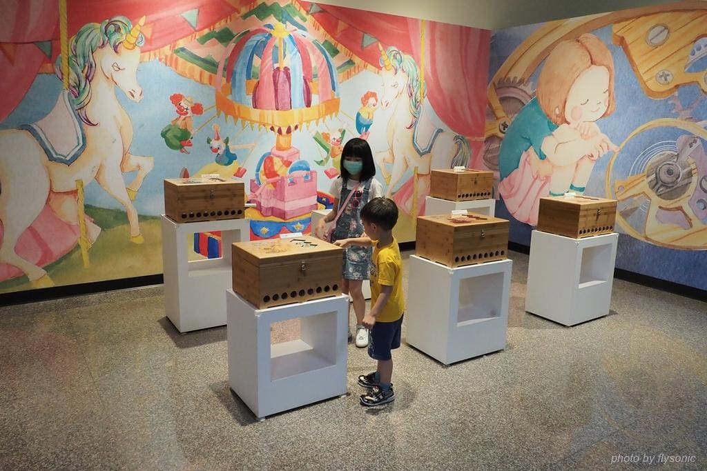 ▲來到展場的後方,放置幾個手搖式音樂盒提供遊客體驗,手搖一搖音樂盒就發出聲音,小孩在這裡把玩許久。