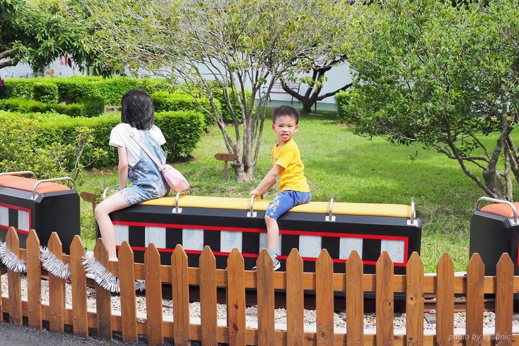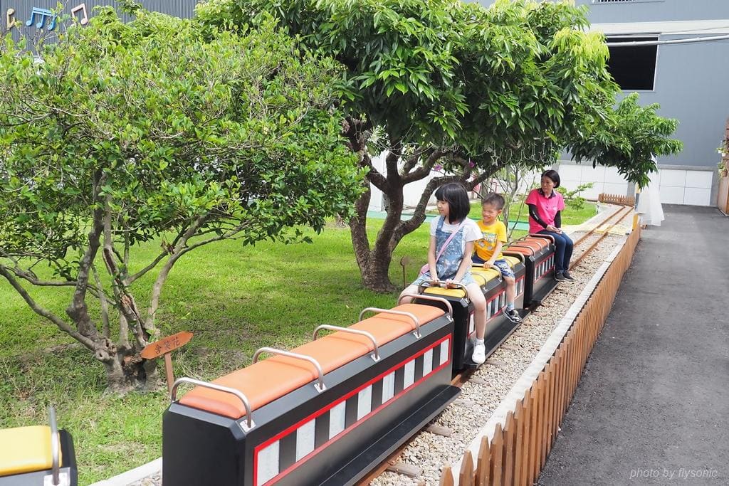 ▲小火車轉了兩圈才停,還會經過黑漆漆的山洞,兒子玩得蠻開心。