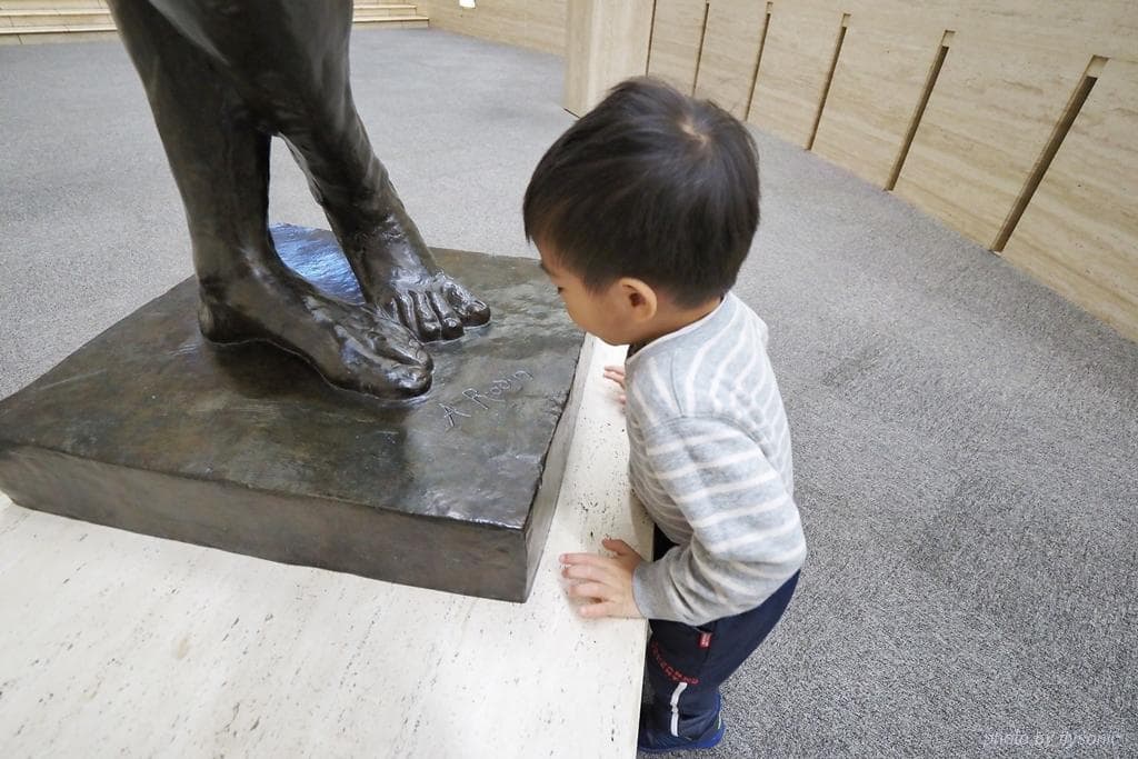 兒子看不懂雕塑,但是從羅丹的署名當中找到樂趣—他會認出A-R-o-d-i-n。