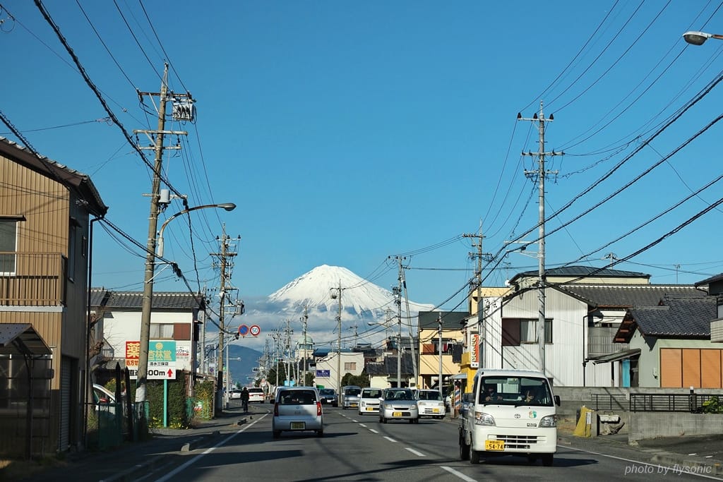 天氣晴朗,一路上都可以看見富士山。行到此處,發現富士山就在正前方歡迎著我們。