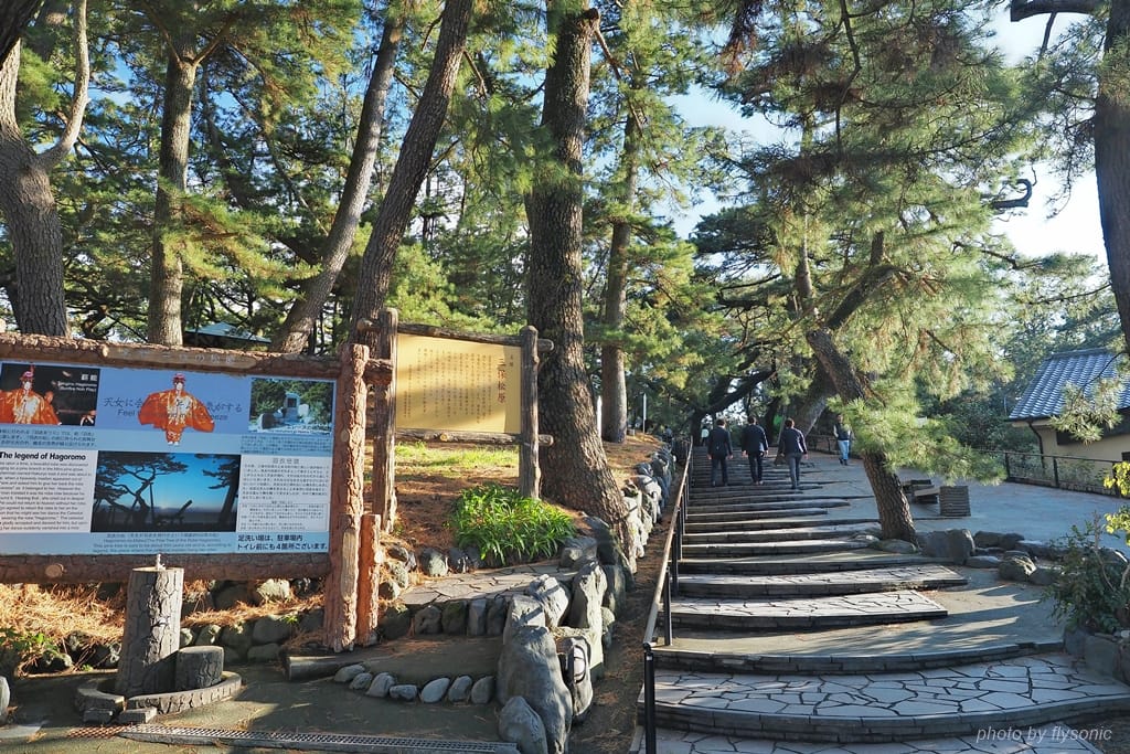 傳說中,天女被此地的風景吸引而下凡, 沐浴時,將羽衣掛在松樹上,結果被漁夫拿走了。後來天女表演一首舞蹈才順利取回羽衣。