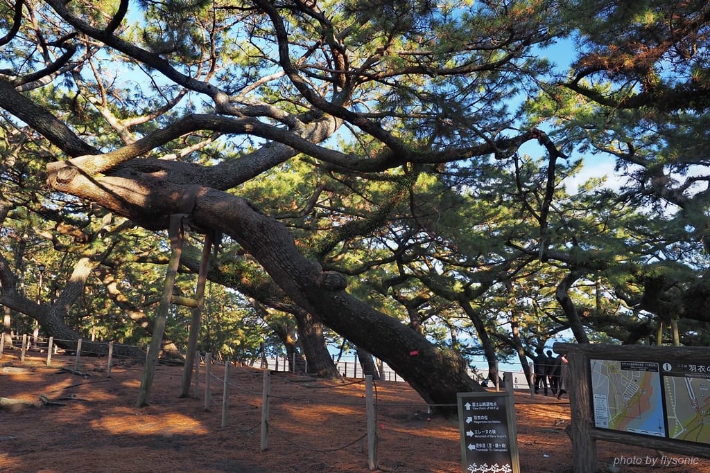 第一代的羽衣之松,因為富士山的噴發而沈沒,第二代在高齡 650 歲時枯死,目前是2010 年更換的第三代,約200歲,柔和中帶剛強。
