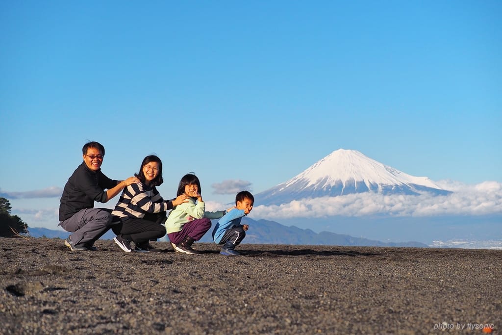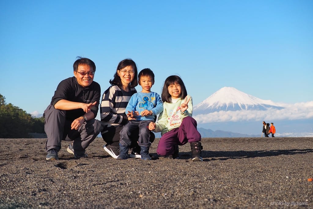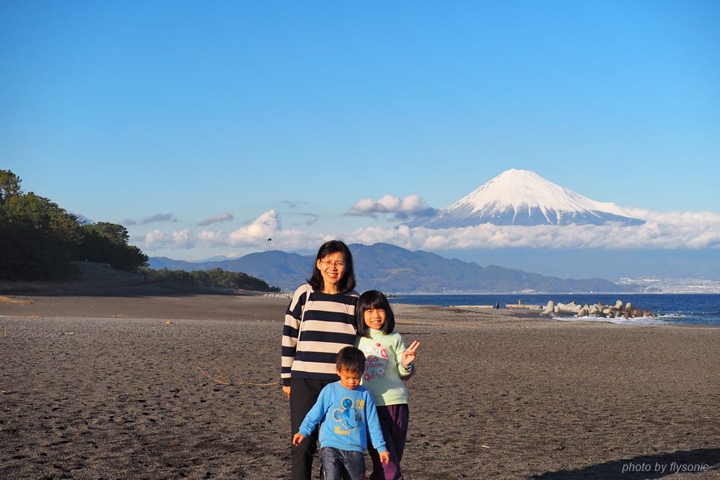 富士山在黑砂、大海、青松的襯托之下,氣勢恢弘,樸實無華,還帶點滄桑之感,與山梨縣河口湖地區所見到的富士山截然不同。
