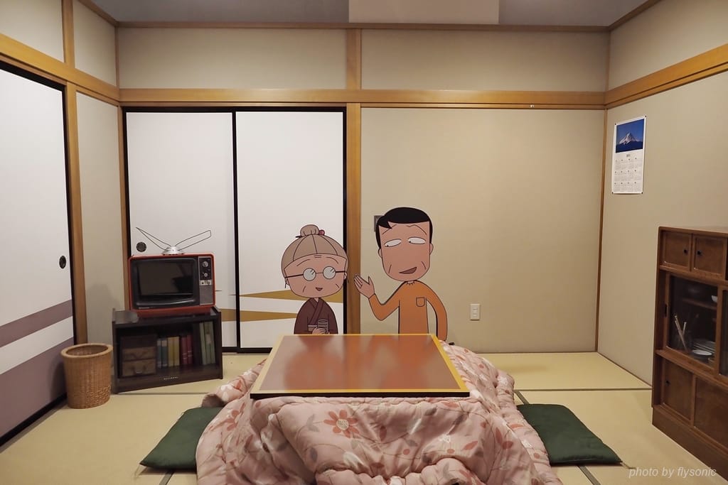 首先來到小丸子的家,小丸子生長在70年代,傳統又草根的家庭,家境並不富裕,擺設以傳統日式榻榻米為主。