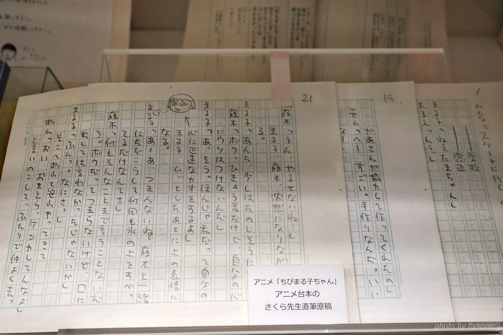 來到這一區,展示的是小丸子的作者櫻桃子的手稿及其它創作的資料。