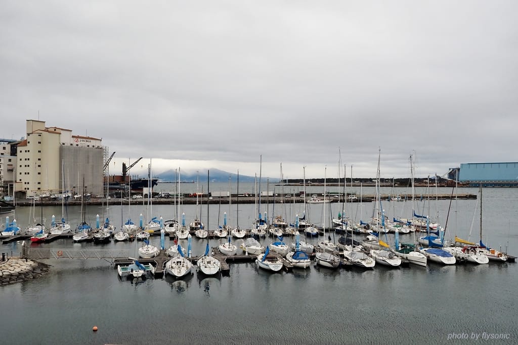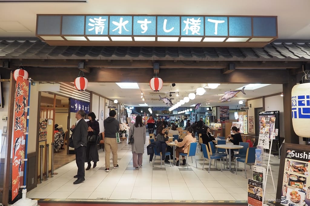 走到底是著名的清水壽司橫丁,稍後我們會去吃壽司。若不要進去壽司橫丁,也可以買想吃的壽司便當到公共區域的餐桌椅去用餐,我認為用餐環境及採光都還不錯,可以看見清水港的船隻。