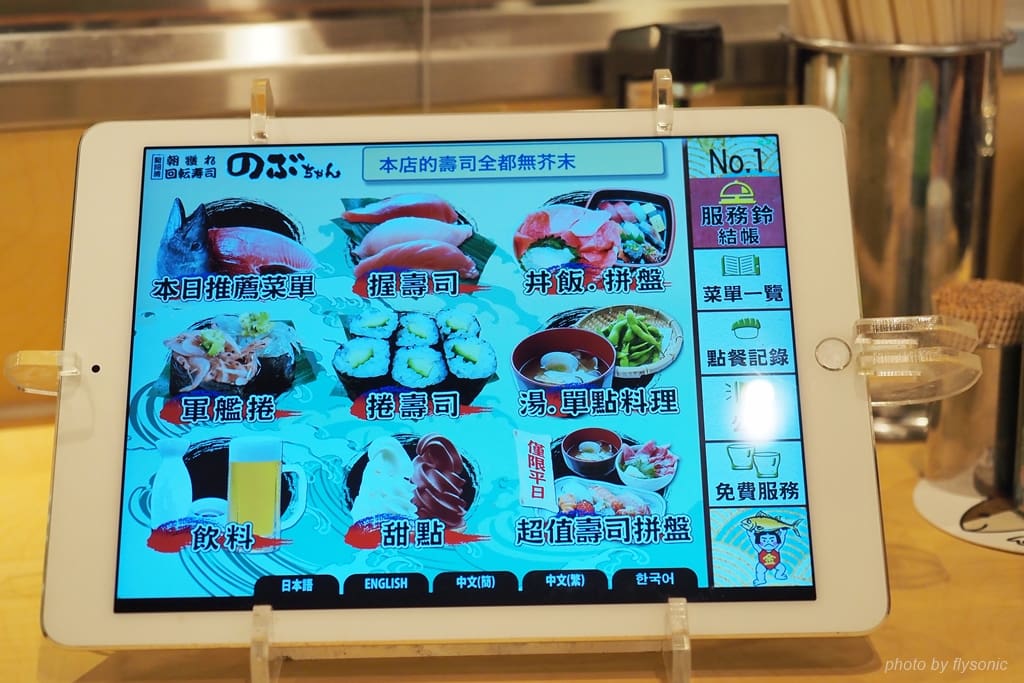 沒想到,兒子看著牆壁上的店家海報後,竟然指說他要吃裡面有包小黃瓜的小小壽司。這下可真是太好了,解決了一個問題。我們就決定在編號第 5 號的迴轉壽司店用餐。