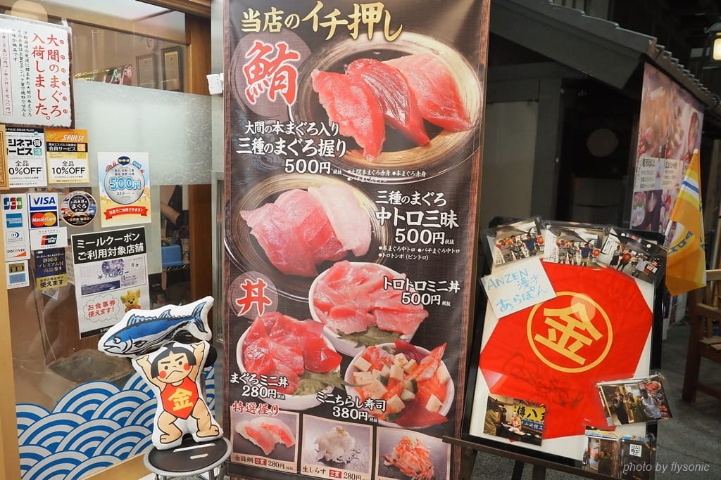 這裡每一間店都是做生魚片壽司。我心想,兒子年紀還小,不能吃生魚片,是要吃什麼才好呢?