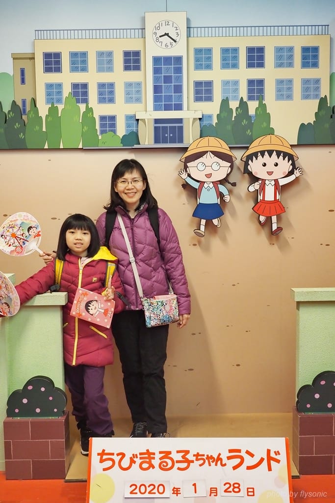 這裡是最經典的拍照位置,小丸子跟她最好的朋友小玉坐在長椅上,中間特別留空位給遊客坐著一起拍照。