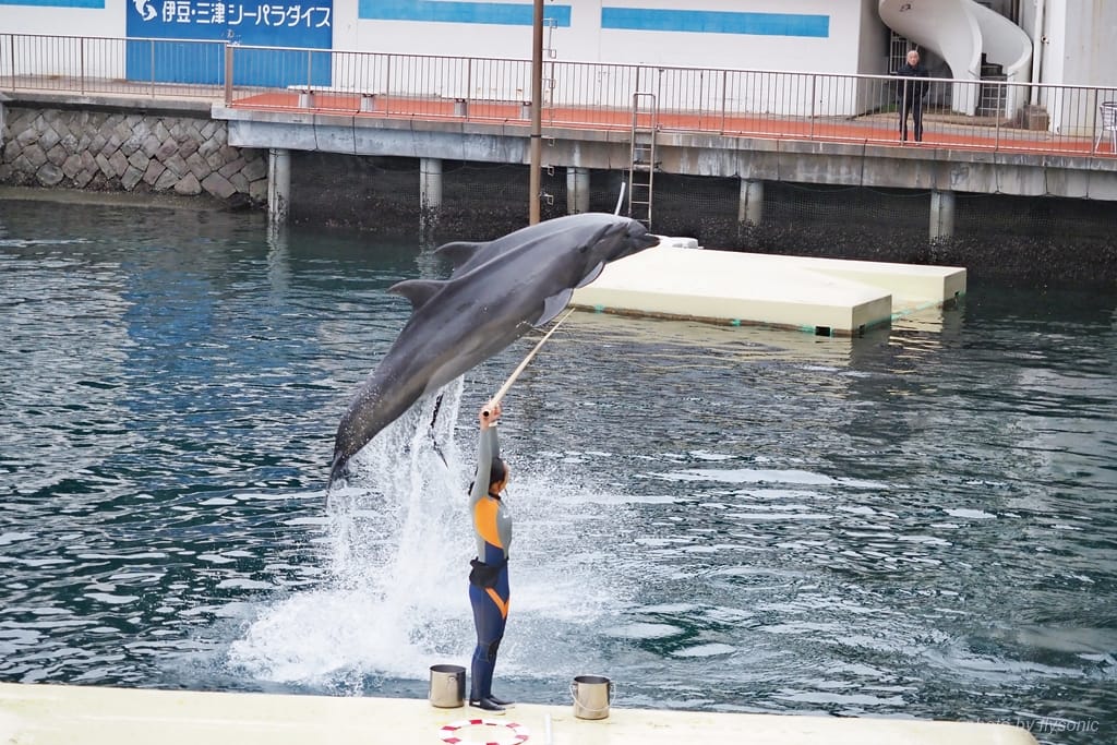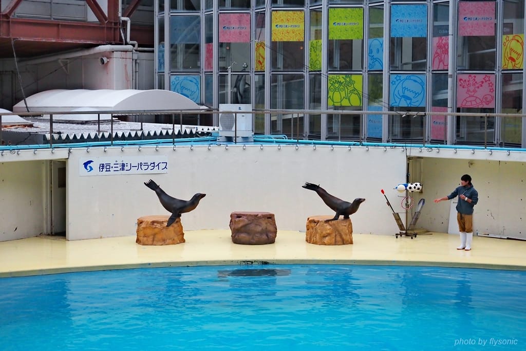 伊豆三津海洋天堂的成立年代較早,硬體設施老舊了些,然而它的強項是表演節目。截至目前為止,這間水族館的節目,是我所看過的水族館表演中最棒的,尤其是女訓練師與海豚的那場表演,人與海豚的完美搭配,讓人覺得他們溝通無礙,甚至達到心靈相通的境界。