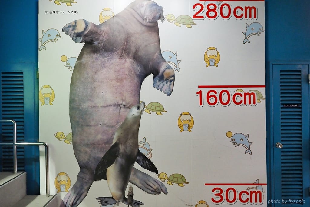 進到地下室之後,首先看到上面這幅海象跟海獅的身高對照圖。