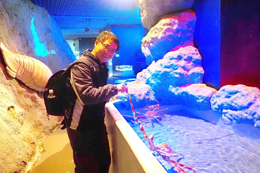 雖然我覺得跟高足蟹握腳沒什麼,但是一旁的兒子可是嚇壞了。