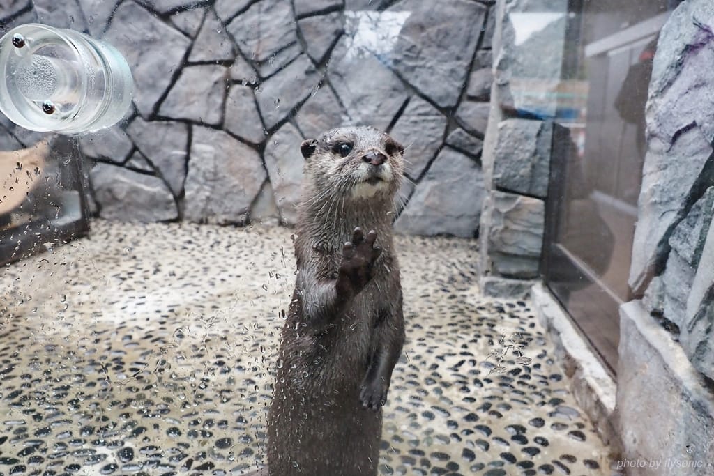 看完海豚表演之後,我們就在戶外區繞一繞。看到這隻貌似水獺的動物,非常可愛,無辜的眼神。