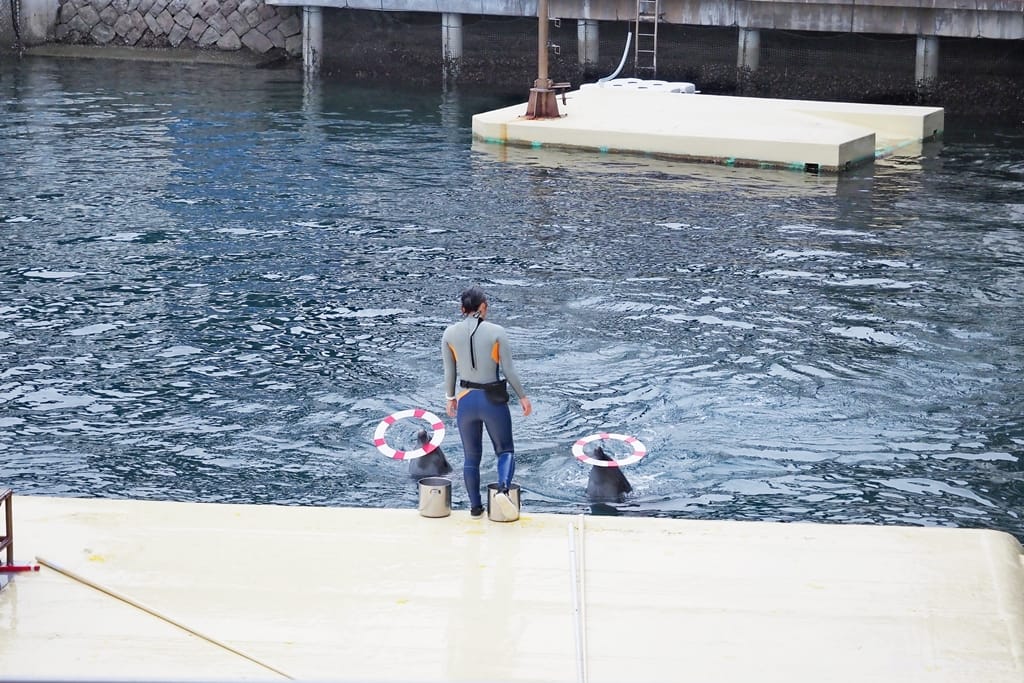 逛了水族館的戶外區,我們還看到館方利用地理優勢,另外養了好多海獅、海豚等水中動物。
