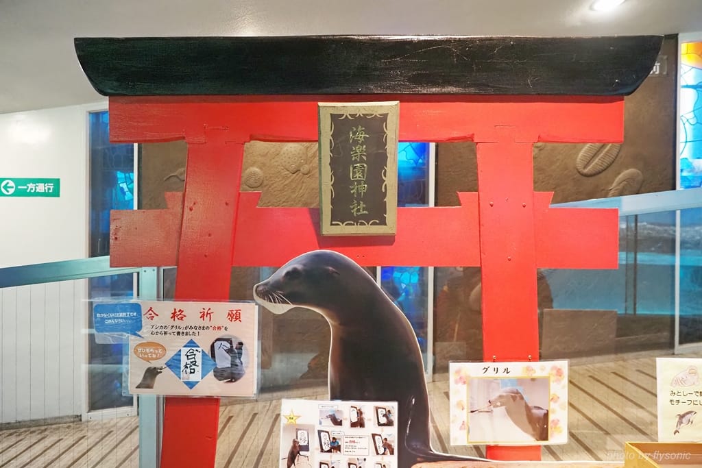 這就是會寫字的招牌海獅,在這裡立一個神社的牌坊是什麼意思呢。