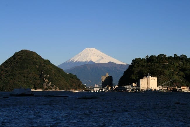 上網做功課後,我發現在內浦三津漁港,有個拍攝富士山的絕佳點,就是從淡島跟伊豆本島之間的夾縫中看到富士山。
