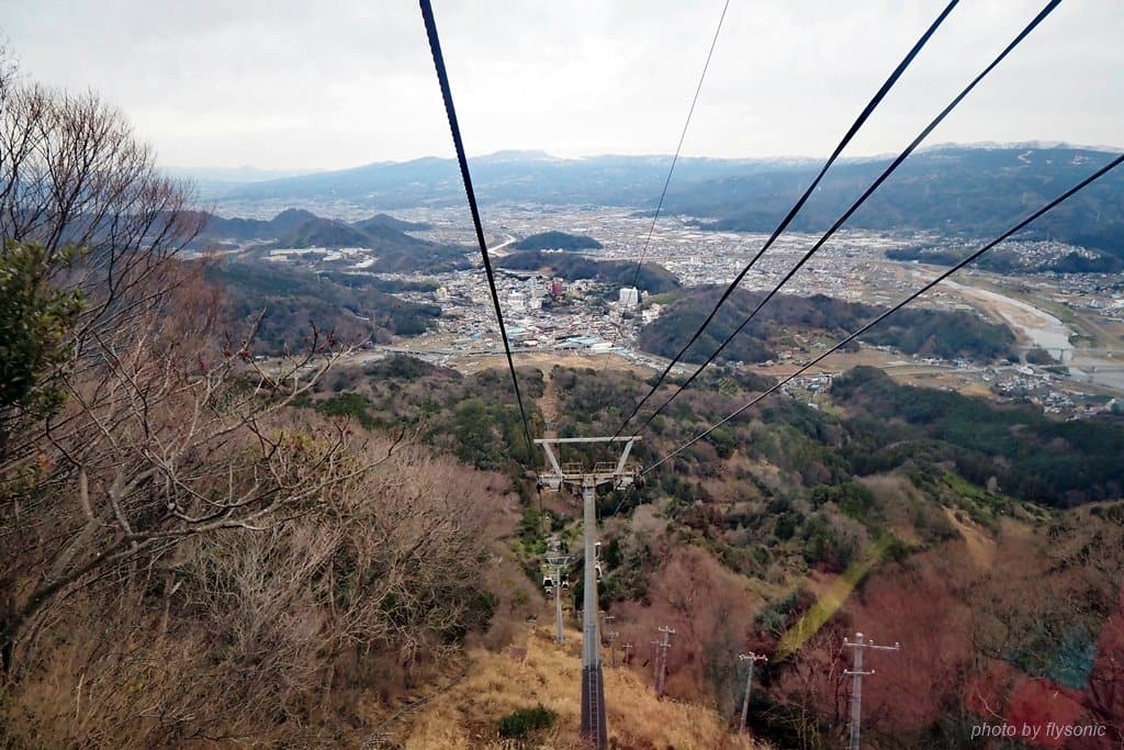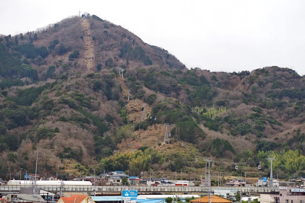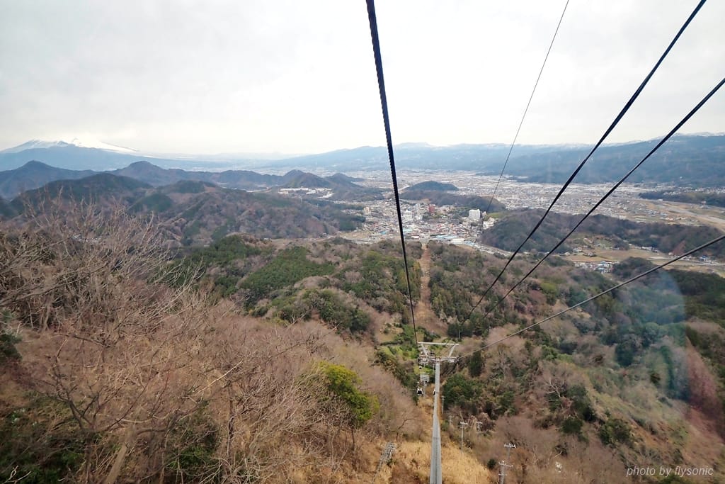 昨天從伊豆長岡石之屋旅館房間看見一台台纜車掛在山頭上。石之屋旅館距離伊豆之國全景公園開車只要 3-5 分鐘左右。