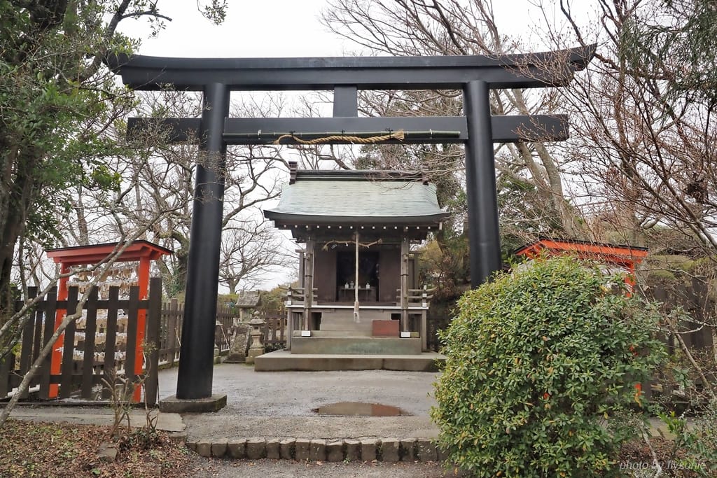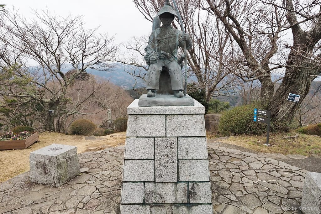 一旁有「源賴朝」的雕像。他是鎌倉幕府的首任征夷大將軍,也是日本幕府制度的建立者。