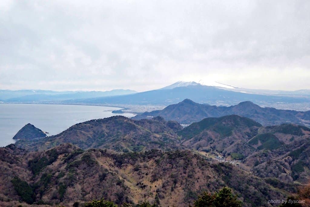 富士山的前方就是美麗的「沼津港」及「駿河灣」。左手邊三角形的小島就是形狀可愛「淡島」。可惜用再好的相機也拍不出現場看到的感覺。