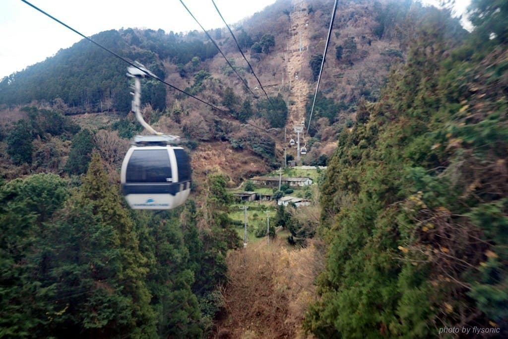 這趟纜車車程足足有七分鐘長,翻越一個、兩個山頭。從照片看起來窗外的景色灰濛濛的,但是在現場親眼看到的景色是開闊、清新的。