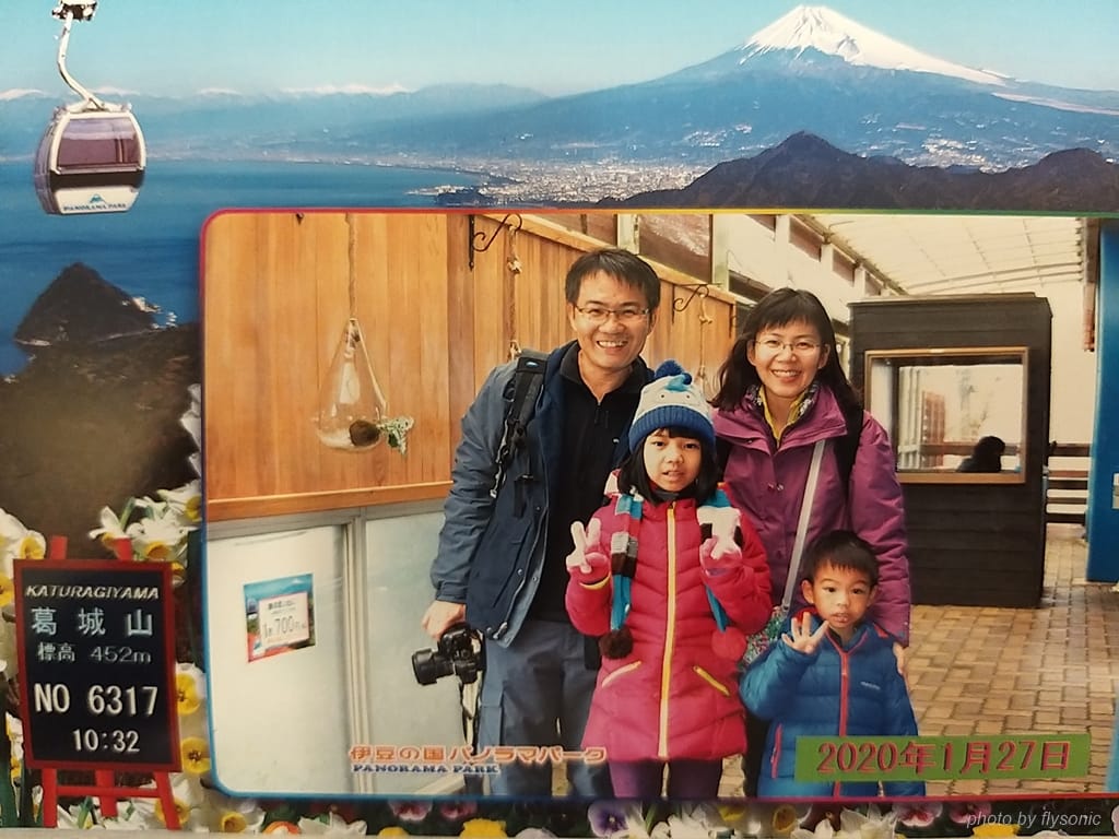 有了這次的經驗,我還會再來看伊豆之國全景公園最美的一面。附上一張山上纜車站所拍攝的全家福—下次我想看見這樣的風景!
