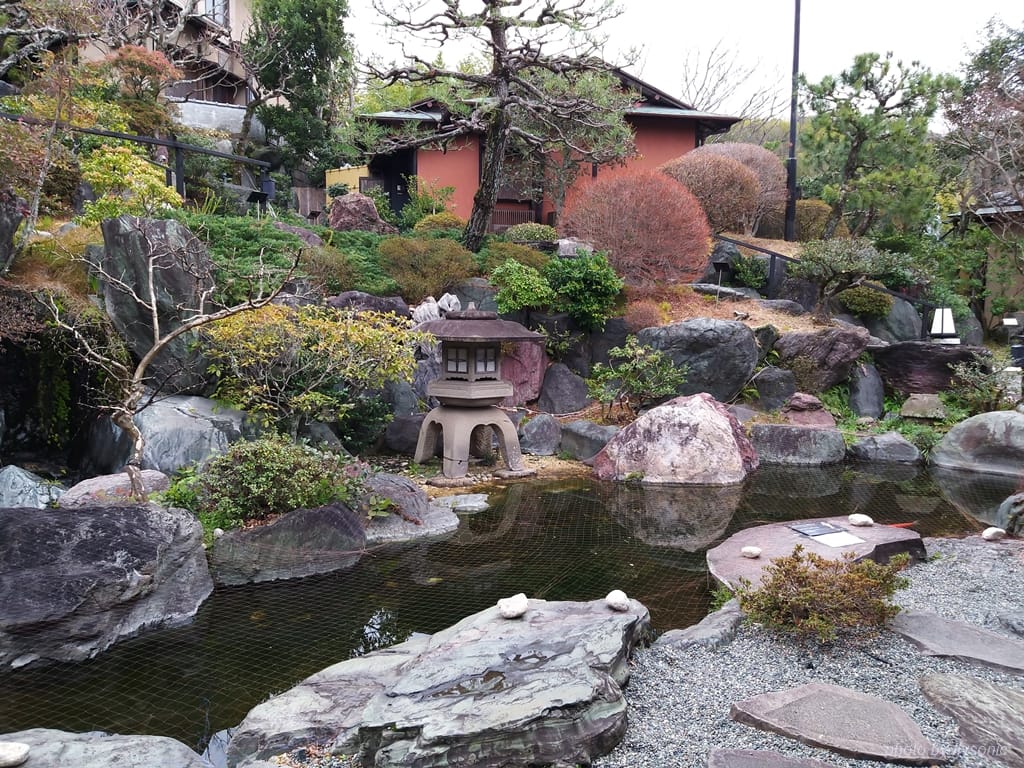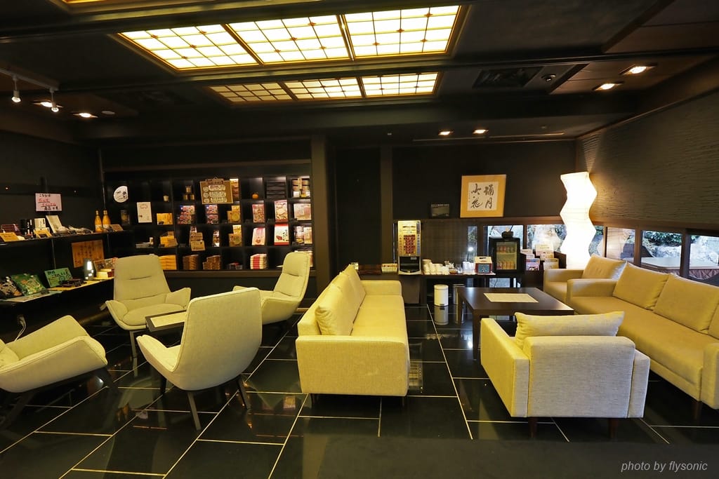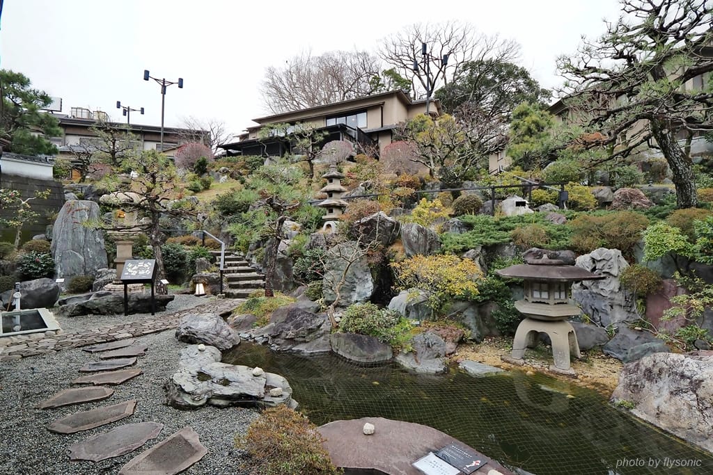 就在辦理入住的櫃臺後方,優雅的日式庭園映入眼簾,小橋流水,池中還有鯉魚悠遊。