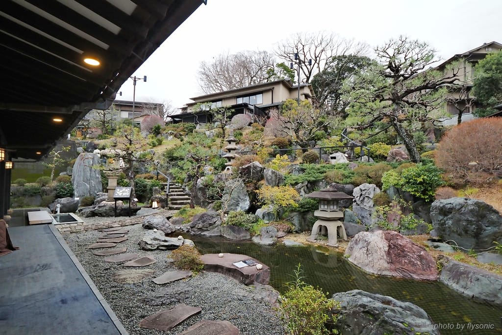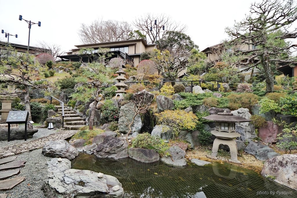 伊豆長岡溫泉的附近就有葛城山的伊豆之國全景公園,是我們隔天預計玩的景點。長岡溫泉的旅館眾多,間間饒富溫泉情趣,很難抉擇。最後,我決定住宿這間「伊豆長岡溫泉別墅花園石之屋」(Izunagaoka Onsen Villa Garden Ishinoya)。搜尋網路,沒有找到任何關於這間旅館的住宿經驗文章,我懷著忐忑的心情訂房。事後證明這個決定則是正確的,這間溫泉旅館非常優質,值得再次入住。