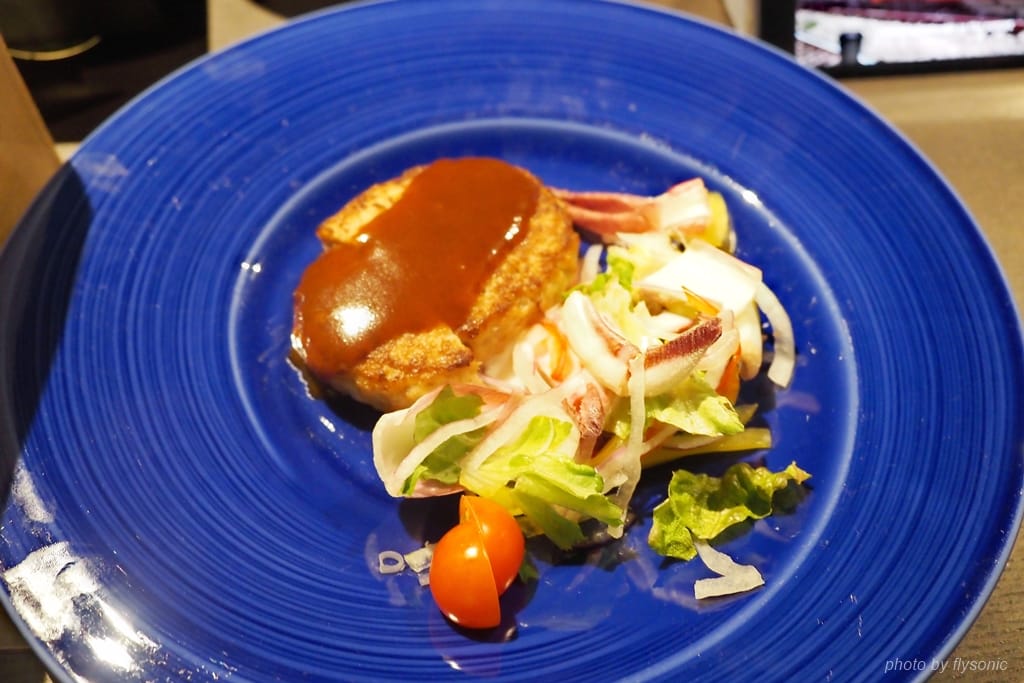 除了日式料理,旅館還為兒子特別準備漢堡肉,可惜他不吃,就被我吃下肚了。