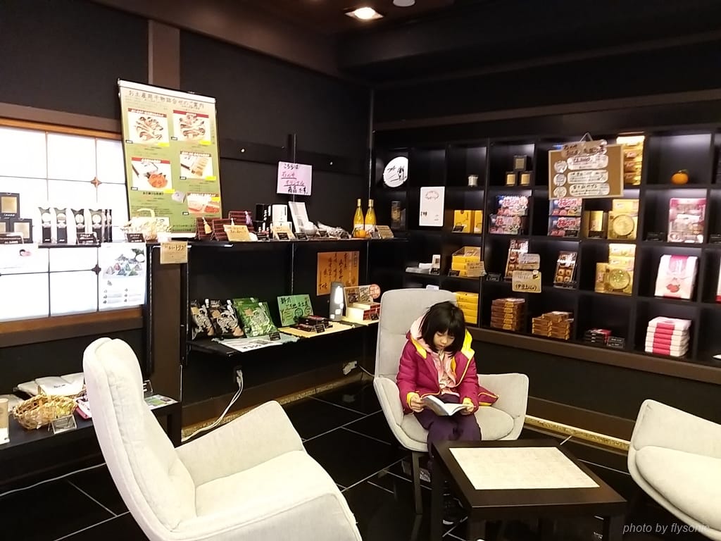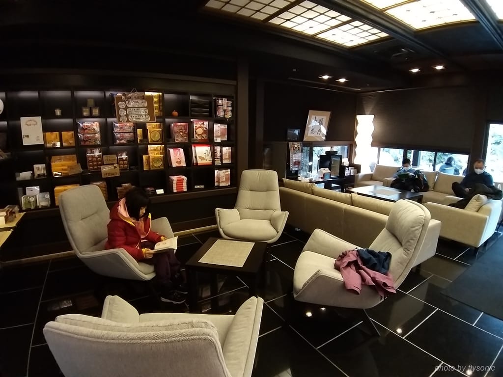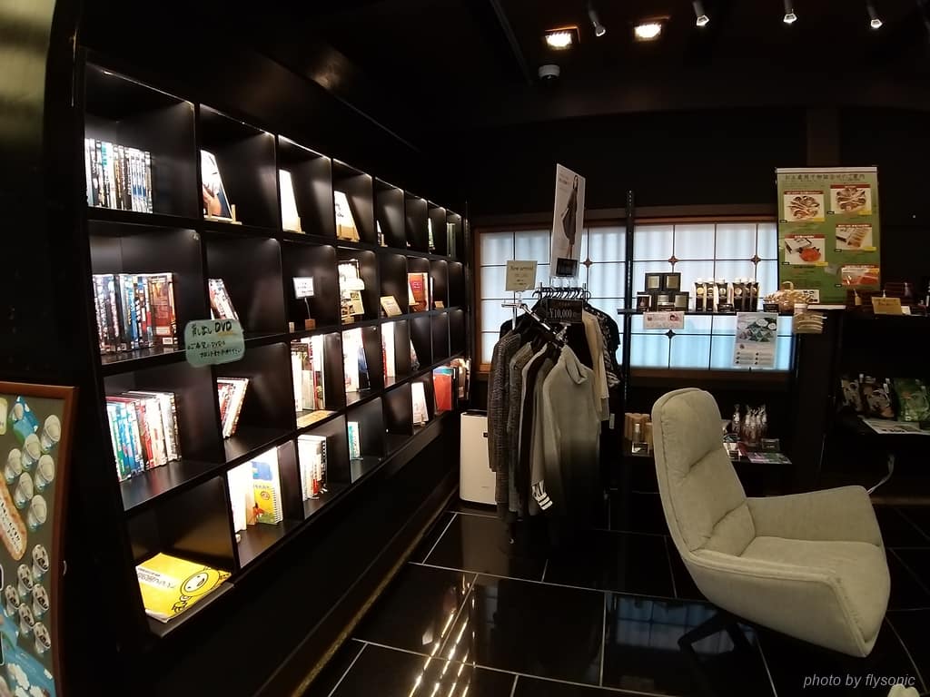 在等待辦理入住跟退房時,旁邊有沙發區跟圖書伴手禮區。沙發區提供免費的咖啡果汁等飲品還有各種餅乾,圖書伴手禮區則提供書籍DVD可以借閱。