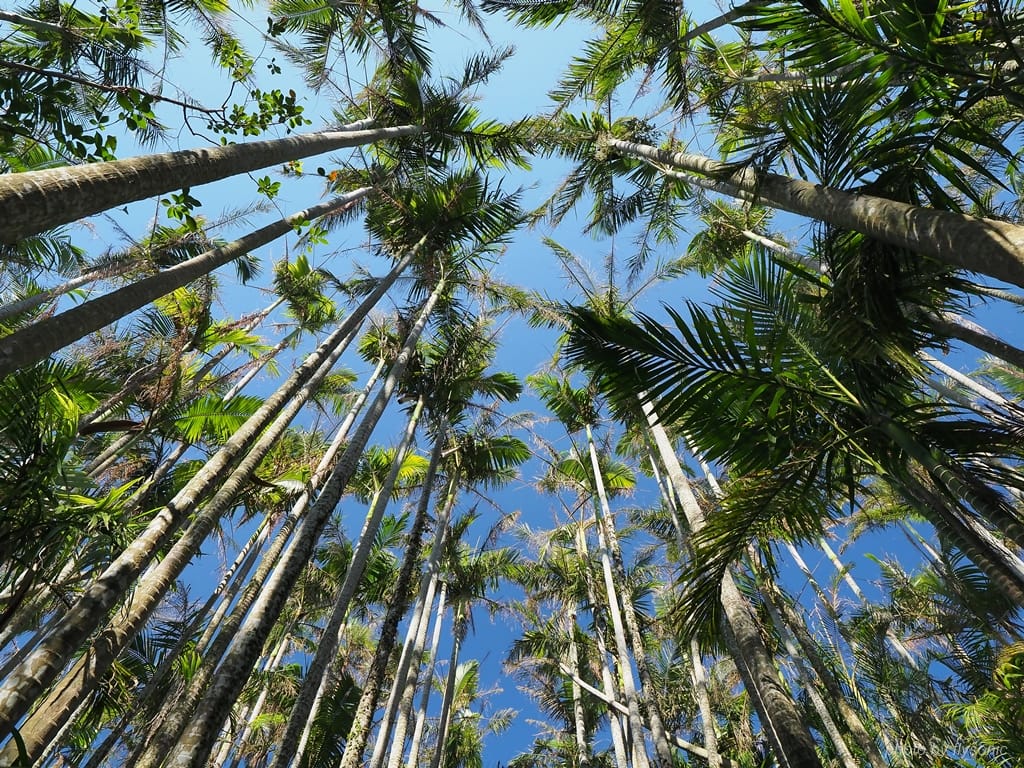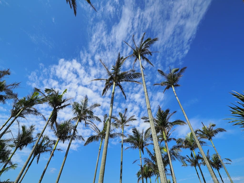 椰子樹群高聳入天。
