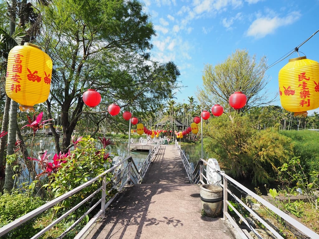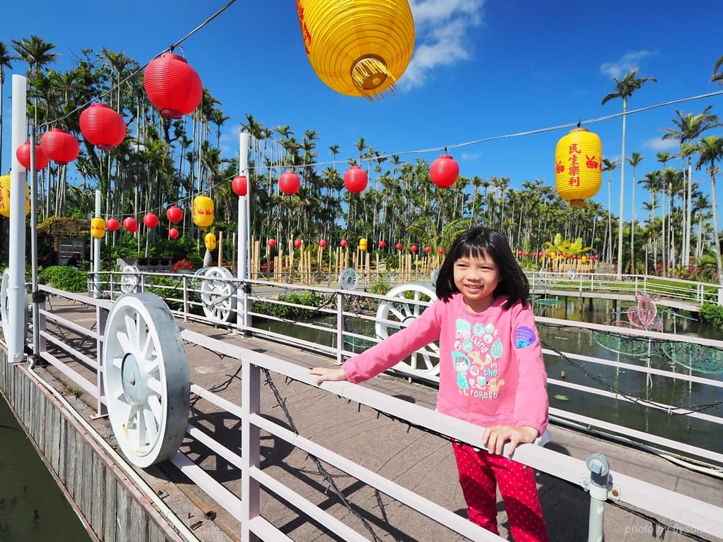 東南植物樂園佔地遼闊,在水上樂園的入口處看到這景象,覺得真是舒暢。入口處旁的商店有設置一處戶外休憩區,我們就在那裡吃點心賞風景,讓小孩把飼料遠拋入池中餵魚。