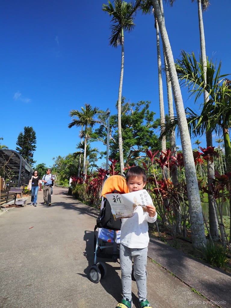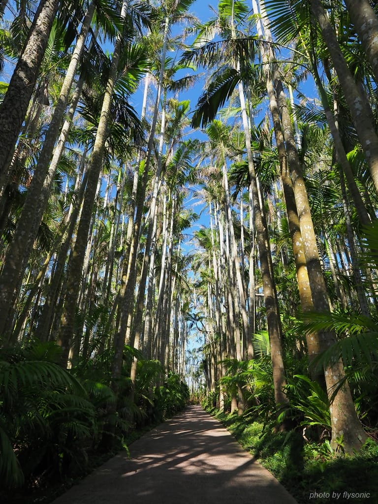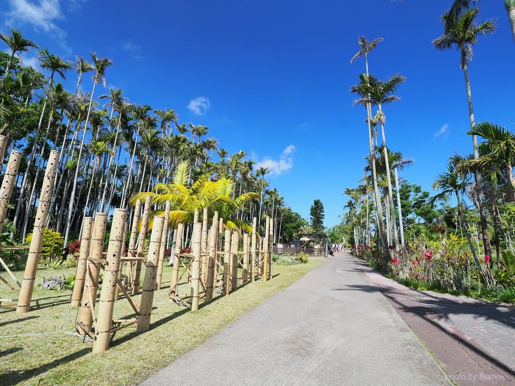 東南植物樂園的水上園區非常大,我們帶著小孩只走小動物餵食區的路線。我個人另外有走到小動物區附近的龍血樹去參觀一下。龍血樹造型獨特,蠻值得一看。之後,我們離開水上樂園,到旁邊的植物園去參觀號稱日本第一的亞歷山大椰林。