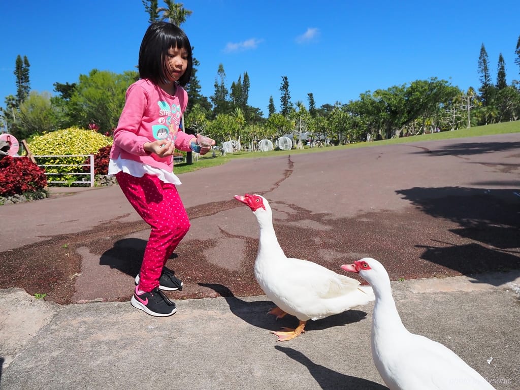 園區除了多樣化的植物之外,還有一區動物餵食區,非常適合當作親子旅遊的地點。畢竟相較於觀賞不會動的景物,小孩還是比較喜歡跟動物互動。我們此行專程來看園區裡的小動物,順道欣賞園區裡的植栽,如此一來,大人小孩都非常滿意。