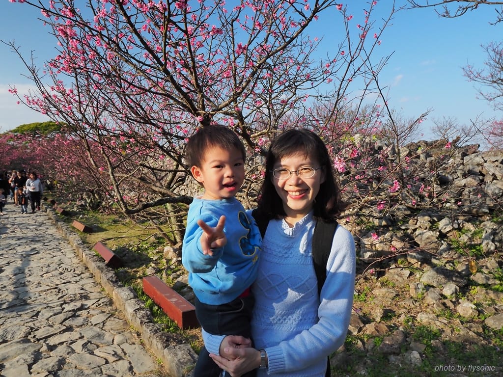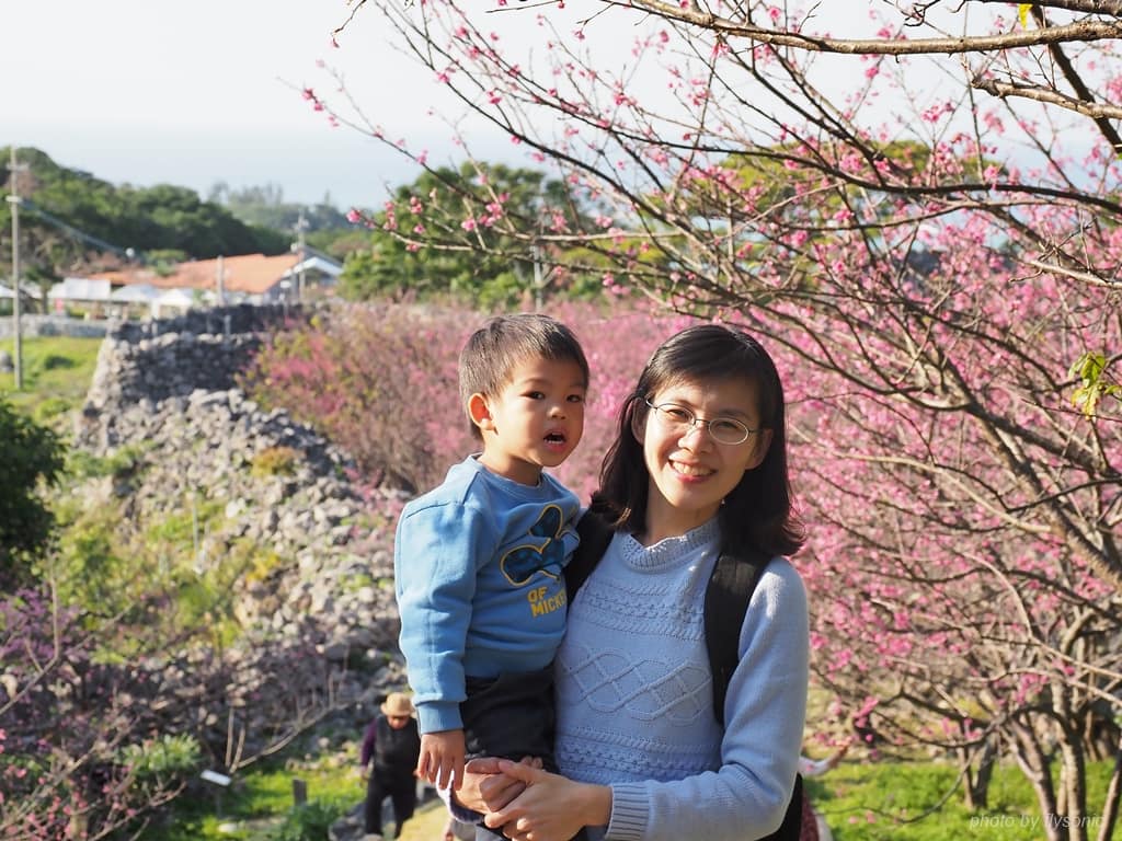 沖繩的世界遺產當中,今歸仁城跡是少數有人文遺跡、天然美景、季節特色可以融合在一起的景點。百年的古老岩石中一群初綻的嬌嫩新粉,這種錯置讓人感到特別的新鮮。