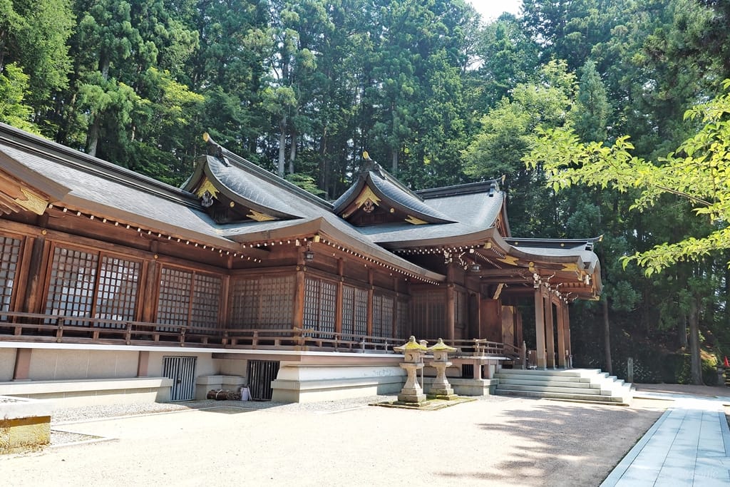 本殿建於1976年,為紀念昭和天皇在位 50 週年而興建。全部以檜木打造而成,散發出強烈的木頭香氣。當我靠近時,陣陣的檜木味道著實讓我驚訝。