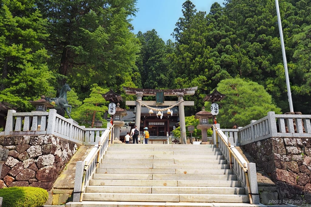 要到本殿前,要爬上19階的樓梯。這石階樓梯可是每一階都是一枚完整的石塊所製成,有「一枚石」階梯之稱號。