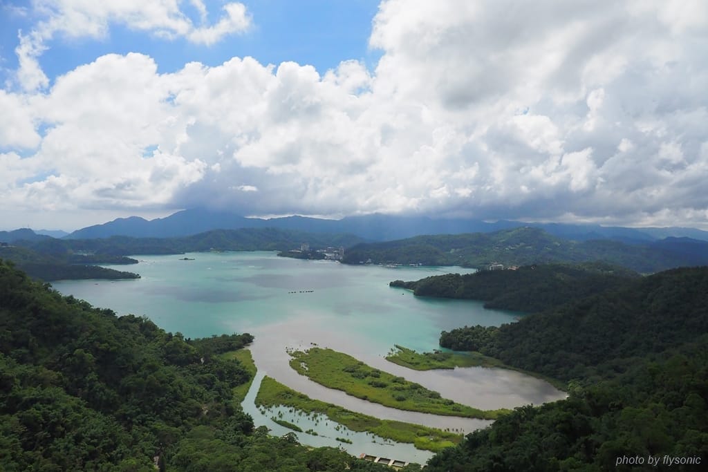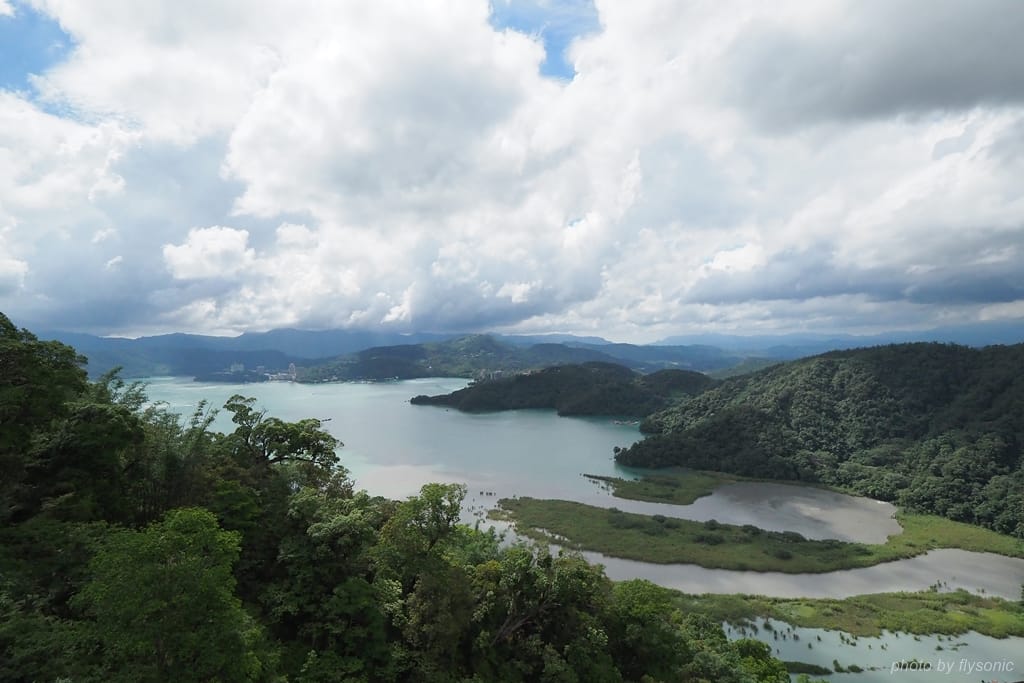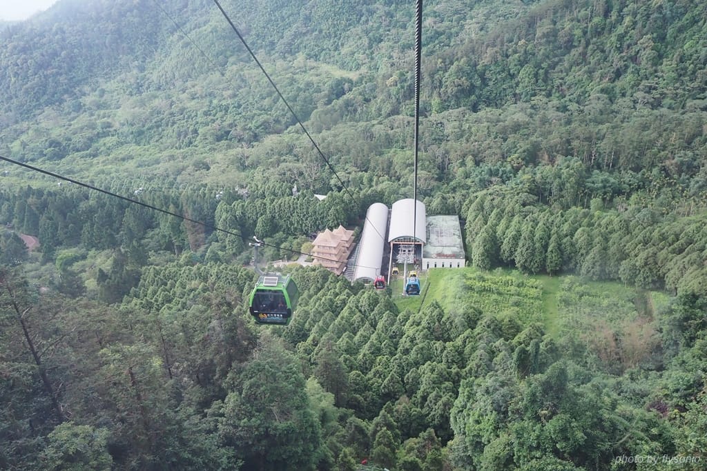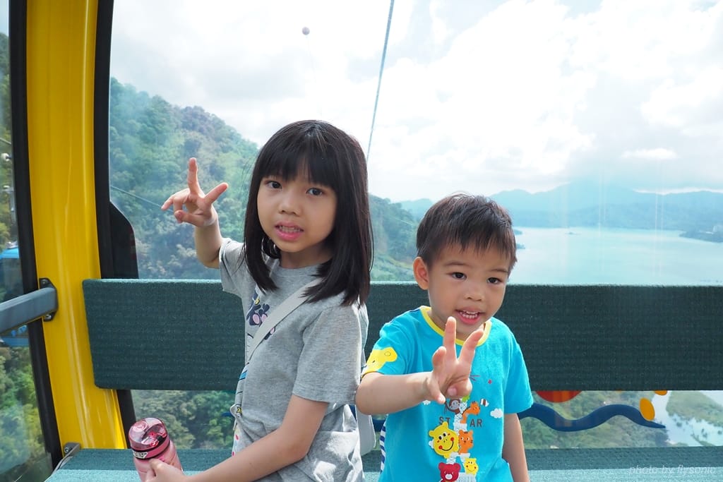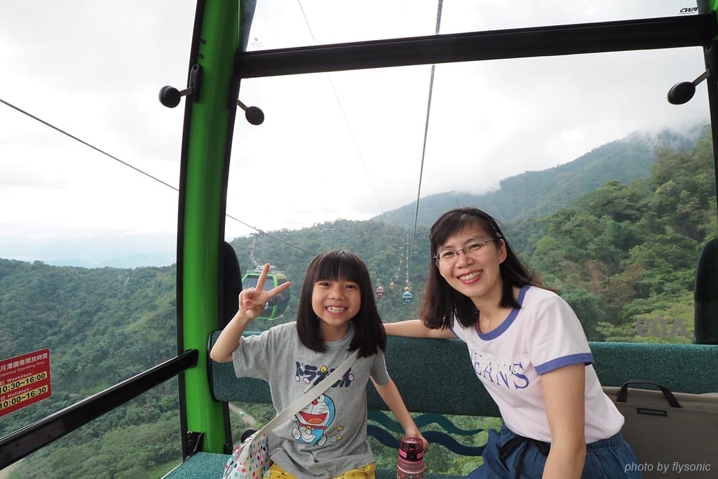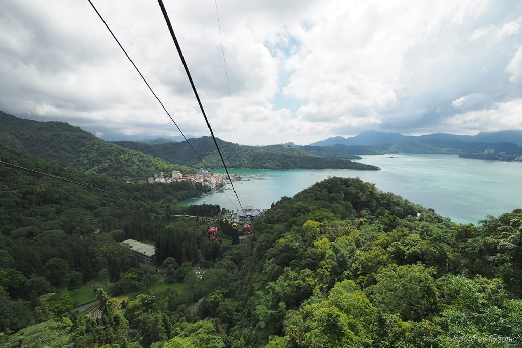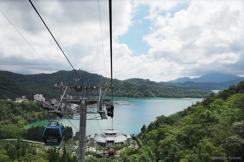 搭纜車的美妙之處在於,能夠在海拔 1044 公尺的高空上聞到清新的空氣,遠眺日月潭的景色,宛如遨翔在群山環繞的湖景之上。