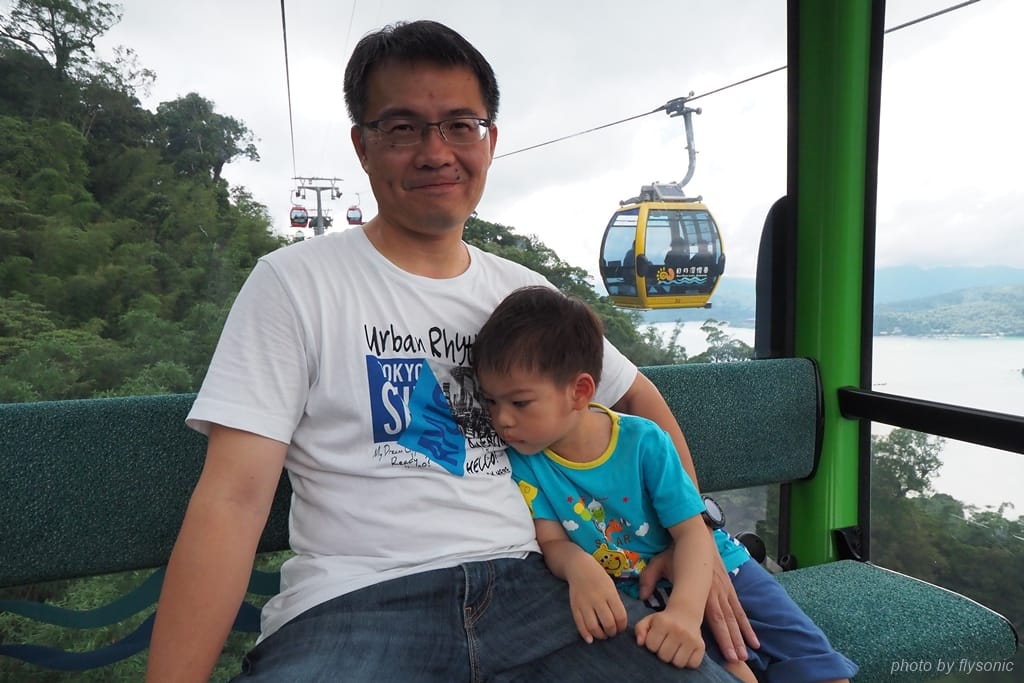 自從日月潭纜車 2009 年底開始營運之後,我們來搭過好幾次。女兒不怕高,很喜歡搭纜車,兒子曾經懵懵懂懂的跟著我們坐過一回。這次南投一日遊,考量兒子已經滿三歲半,對交通工具特別有興趣,就來看看他對纜車有什麼反應。