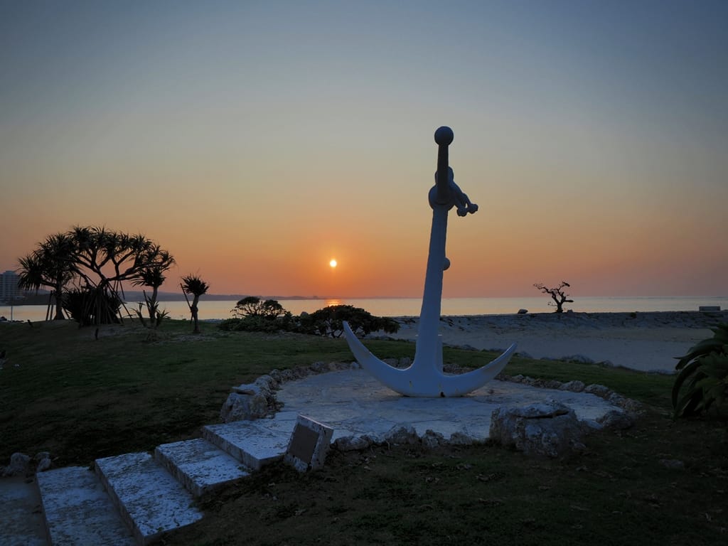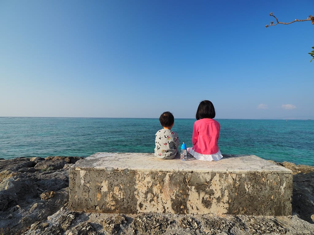 沖繩恩納村的海域,藍綠漸層的夢幻顏色百看不膩。