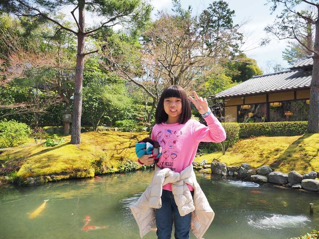 庭院裡花木扶疏,錦鯉悠游池塘中,還有小橋流水的造景,我們在此停留欣賞,聽見潺潺流水聲,感到特別的平靜舒服。